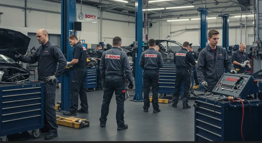 As oficinas, especialmente as da rede Bosch, competem para atrair os melhores talentos e garantir um serviço de alta qualidade.